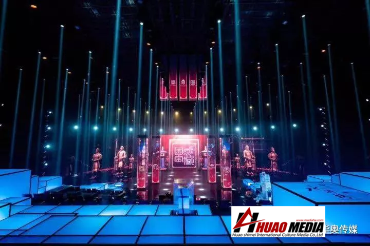 在舞美設計中,使用了LED開合車臺、全息影像技術、天軌吊裝及移動設備、冰屏柱等技術,使整個舞臺在中國風與高科技的完美結(jié)合中,將中華民族文化的魅力淋漓盡致的展現(xiàn)出來。