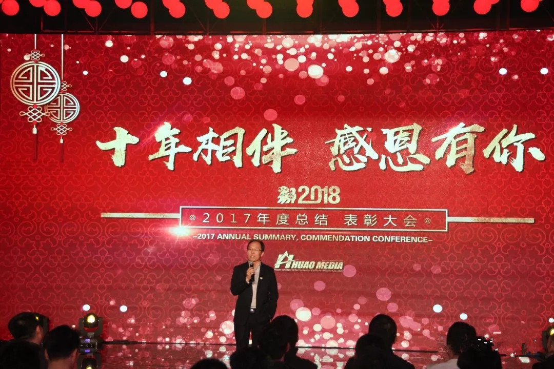 首先, 由 華奧傳媒 董事長(zhǎng)劉棟先生 致辭,他回顧了在2007年,公司從其他行業(yè)直接轉(zhuǎn)型進(jìn)入到現(xiàn)在的文化傳媒領(lǐng)域, 在公司遵循 “不借款 不欠款 不貸款 ”, 個(gè)人遵循 “不抽煙,不喝酒 不應(yīng)酬” 的原則下 一切從零開(kāi)始 摸著石頭過(guò)河 一步一步走到了今天,并且取得了一些還算不錯(cuò)的成績(jī),也獲得了行業(yè)的認(rèn)可 。對(duì)于公司的前十年 他用了三個(gè)字概括 那就是 “不容易”?。?! 對(duì)于個(gè)人前十年的總結(jié) 他用了四個(gè)字 “ 感動(dòng) 知足 ” ,感動(dòng)不同于感謝,感謝是表面現(xiàn)象,而感動(dòng)是發(fā)自內(nèi)心。他的感動(dòng)主要來(lái)源于華奧這些員工、這些最可愛(ài)的人,感動(dòng)于他們的吃苦、敬業(yè)和忠心!多年來(lái)風(fēng)風(fēng)雨雨、不離不棄的與公司攜手同行。這期間也無(wú)數(shù)次收獲了客戶對(duì)他們的表?yè)P(yáng)和認(rèn)可!每每想到這里心里總是曖暖的,所以這也一直是他努力工作的動(dòng)力源泉 。 對(duì)于“知足” ,他的解讀是知足于華奧已有的今天,在中國(guó) 私營(yíng)企業(yè)的平均壽命是2.5年 每年有約100萬(wàn)家私營(yíng)企業(yè)破產(chǎn)倒閉,正常經(jīng)營(yíng)10年以上的還不足5% 。只要盡心盡力的去做,無(wú)論華奧的明天是在風(fēng)口之巔還是歸于平淡,他都不后悔!但知足只是一種心態(tài),不代表停滯!未來(lái)華奧還會(huì)一直秉承 敢為天下先的心態(tài),積極進(jìn)取、砥礪前行!